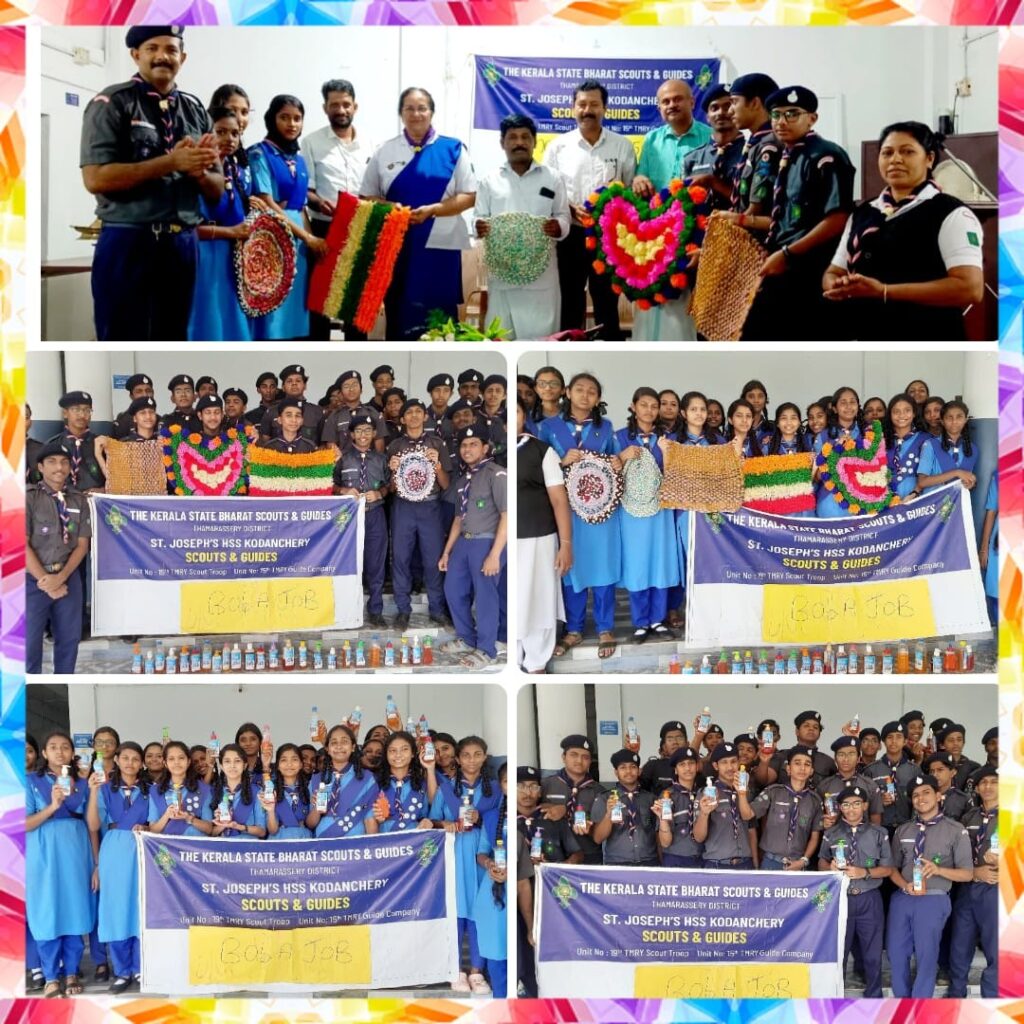 കോടഞ്ചേരി സെൻ്റ് ജോസഫ്സ് ഹയർ സെക്കണ്ടറി സ്കൂളിലെ സ്കൗട്ട്സ് & ഗൈഡ്സ് വിദ്യാർത്ഥികളുടെ ആഭിമുഖ്യത്തിൽ സ്വയം തൊഴിൽ പരിശീലനത്തിൻ്റെ ഭാഗമായി ‘മൾട്ടീ പർപ്പസ് ലിക്യുഡ്, ചവിട്ടി നിർമ്മാണം’ എന്നീ പരിപാടികൾ നടത്തി. സ്കൗട്ട്സ് & ഗൈഡ്സ് വിദ്യാർത്ഥികൾ,മൾട്ടീ പർപ്പസ് ലായനി ഉപയോഗിച്ച് ഗുണമേന്മയുള്ള ഹാൻഡ് വാഷ്,ക്ലിനിംഗ് – വാഷിംഗ് സൊലൂഷൻ എന്നിവ തയ്യാറാക്കി.