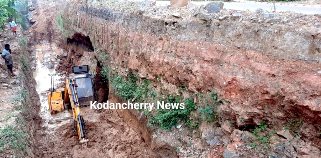 നന്നാക്കാൻ വന്ന വാഹനത്തെ വരെ വെറുതെ വിടാതെ ഒരു റോഡ്…., ഉദ്ഘാടനം കഴിഞ്ഞ് ഒരു മാസത്തിനുള്ളിൽ തകർന്ന കുപ്പായക്കോട് റോഡിൽ രണ്ടാമതും പോക്ലൈൻ താഴ്ന്നു.