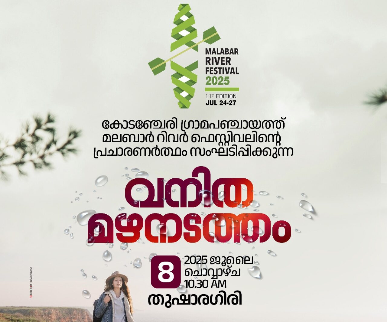 മലബാർ റിവർ ഫെസ്റ്റിവൽ വനിതകളുടെ മഴ നടത്തം ചൊവ്വാഴ്ച രാവിലെ തുഷാരഗിരിയിൽ കോടഞ്ചേരി: കേരളസർക്കാരിൻ്റെ ടൂറിസംവകുപ്പ് സംഘടിപ്പിക്കുന്ന 11-ാം മലബാർ റിവർ ഫെസ്റ്റിവൽ 2025 ജൂലായ് 24 മുതൽ 27 വരെ കോടഞ്ചേരി പഞ്ചായത്തിലെ ഇരുവഞ്ഞിപ്പുഴയിലും ചാലിപ്പുഴയിലുമായി നടക്കും. തദ്ദേശസ്വയംഭരണവകുപ്പുമായി സഹകരി…